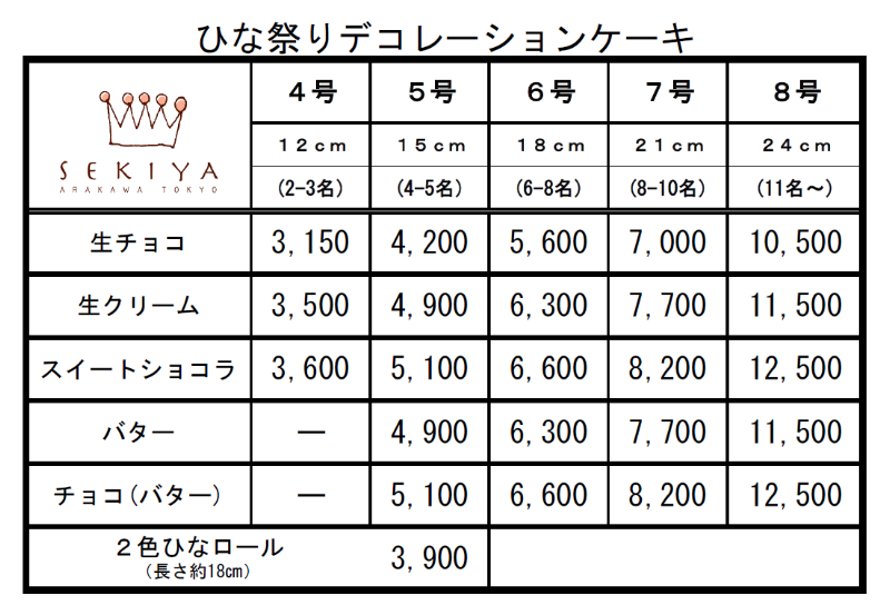 ひなまつりのお祝いをされるご家庭向けに、デコレーションケーキをご用意しました。